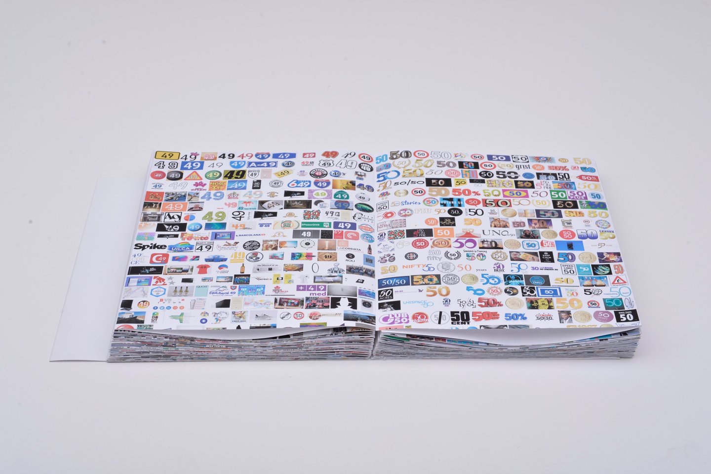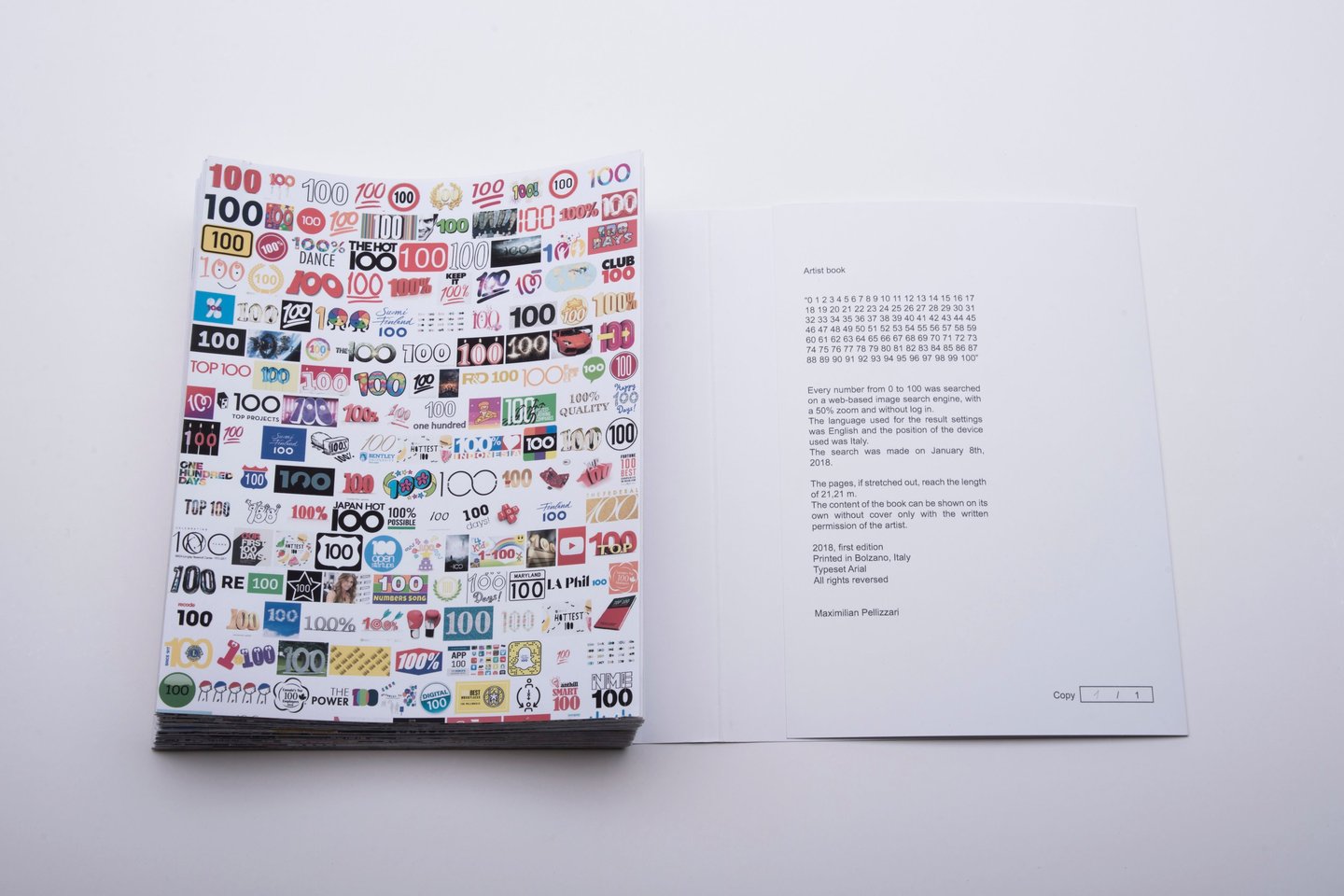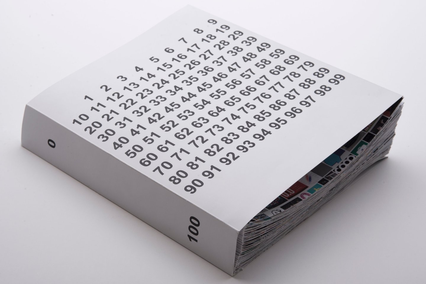 Every number from 0 to 100 was searched on a web-based image search engine. The book is composed by a single page folded multiple times.